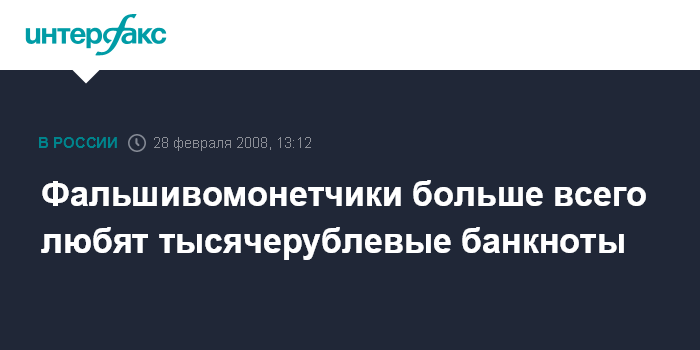 Москва. 28 февраля. INTERFAX.RU - Hаиболее часто подделываемыми купюрами в России являются банкноты достоинством в 1000 рублей, заявляют в экспертно-криминалистическом центре (ЭКЦ) МВД России.