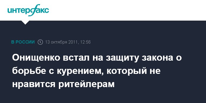 Онищенко встал на защиту закона о борьбе с курением, который не нравится ритейлерам