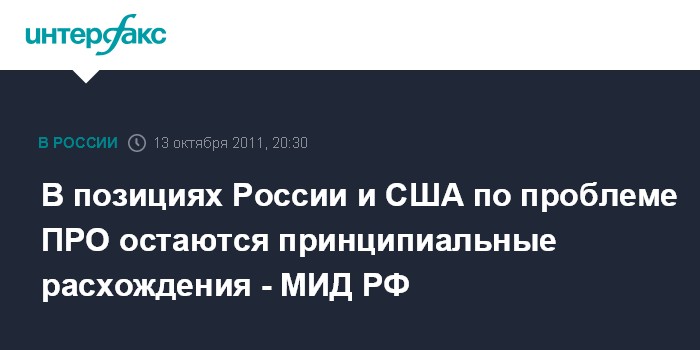 В позициях России и США по проблеме ПРО остаются принципиальные расхождения - МИД РФ