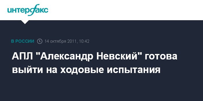 Северодвинск. 14 октября. INTERFAX.RU- Атомный подводный крейсер проекта 955 типа "Борей" "Александр Невский" в ближайшие дни впервые выйдет в акваторию Белого моря для начала ходовых испытаний, сообщил "Интерфаксу-АВН" в четверг представитель Главного штаба ВМФ.