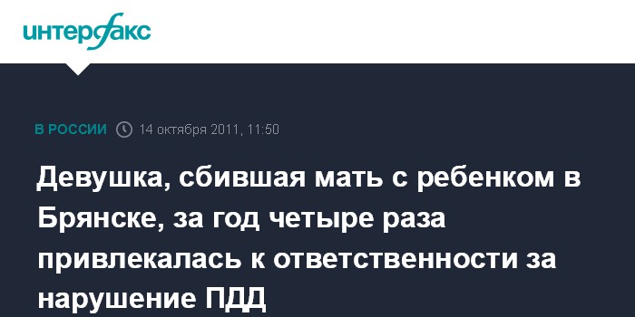 Брянск. 14 октября. INTERFAX.RU - Предполагаемая виновница ДТП в Брянске, получившего широкий общественный резонанс, неоднократно привлекалась к административной ответственности за нарушение правил дорожного движения.