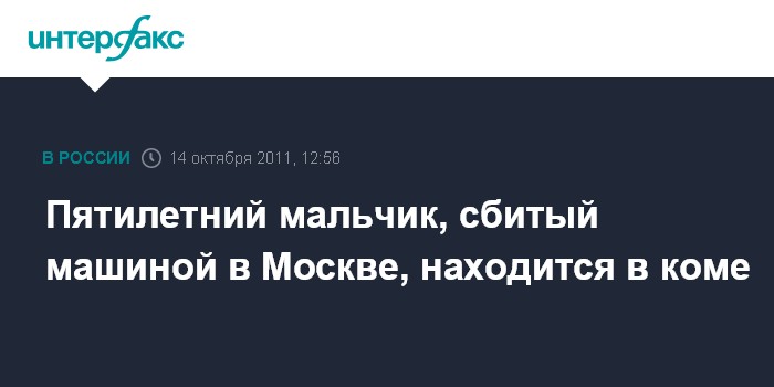 Пятилетний мальчик, сбитый машиной в Москве, находится в коме
