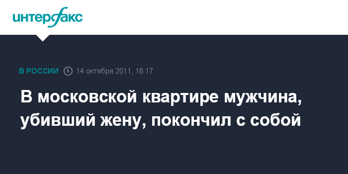 Москва. 14 октября. INTERFAX.RU- Мужчина, убивший свою жену на северо-востоке Москвы и после этого забаррикадировавшийся в квартире, застрелился, сообщил "Интерфаксу" источник в правоохранительных органах.