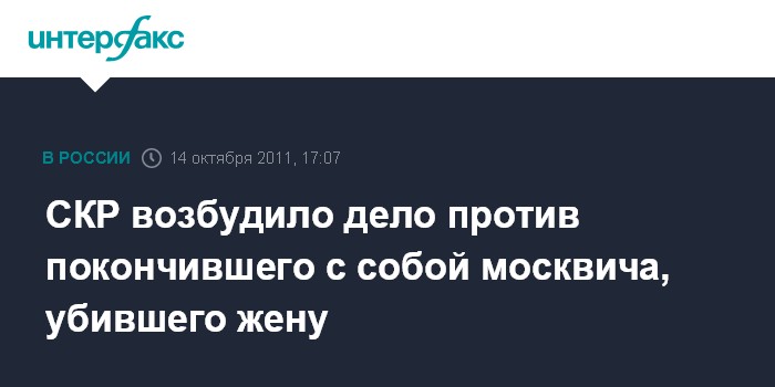 СКР возбудило дело против покончившего с собой москвича, убившего жену