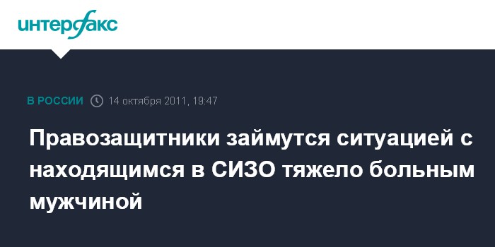 Москва. 14 октября. INTERFAX.RU - Правозащитники намерены побывать в следственном изоляторе "Матросская Тишина", чтобы собрать информацию о состоянии подследственного, который, по оценке родственников, находится в критическом состоянии.