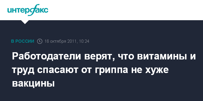 Работодатели верят, что витамины и труд спасают от гриппа не хуже вакцины