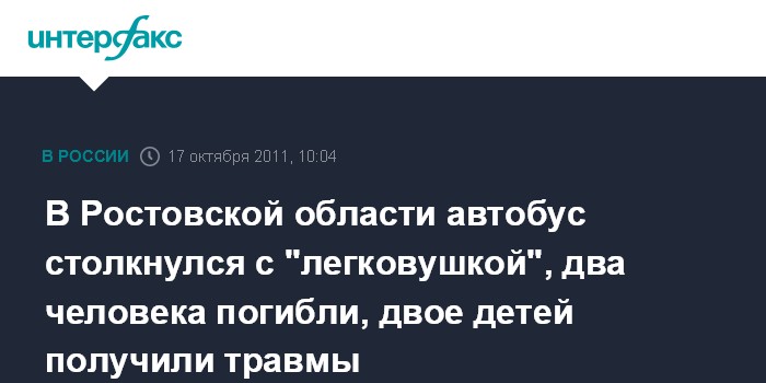 Ростов-на-Дону. 17 октября. INTERFAX.RU - В ДТП в Ростовской области с участием пассажирского автобуса и легкового автомобиля "Мицубиси" погибли двое взрослых, среди пострадавших - двое детей, сообщил агентству "Интерфакс-Юг" источник в экстренных службах региона.