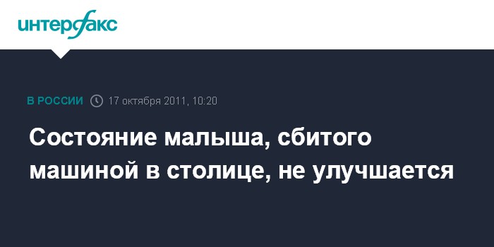 Состояние малыша, сбитого машиной в столице, не улучшается