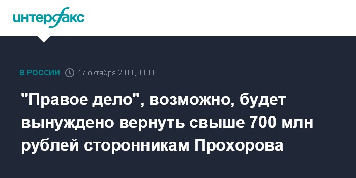"Правое дело", возможно, будет вынуждено вернуть свыше 700 млн рублей сторонникам Прохорова