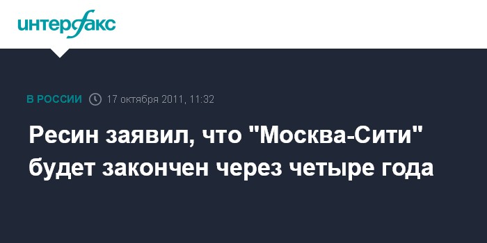 Ресин заявил, что "Москва-Сити" будет закончен через четыре года