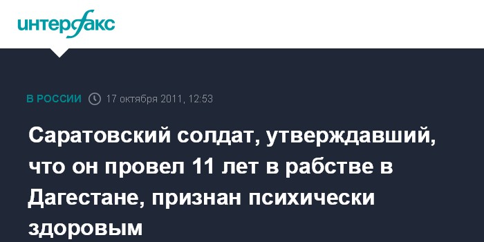Саратовский солдат, утверждавший, что он провел 11 лет в рабстве в Дагестане, признан психически здоровым