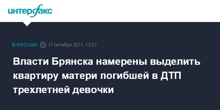 Власти Брянска намерены выделить квартиру матери погибшей в ДТП трехлетней девочки