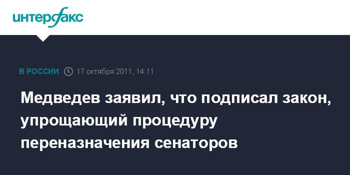 Медведев заявил, что подписал закон, упрощающий процедуру переназначения сенаторов