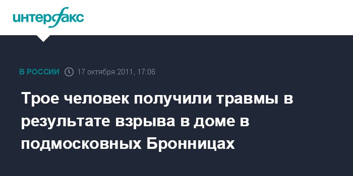 Трое человек получили травмы в результате взрыва в доме в подмосковных Бронницах