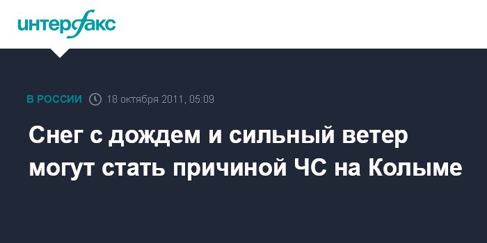 Снег с дождем и сильный ветер могут стать причиной ЧС на Колыме