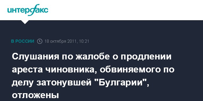 Слушания по жалобе о продлении ареста чиновника, обвиняемого по делу затонувшей "Булгарии", отложены