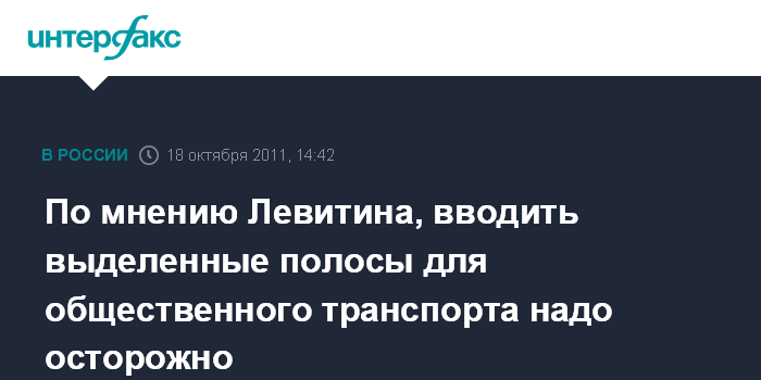 Донецк. 18 октября. INTERFAX.RU - Министр транспорта Игорь Левитин поддерживает инициативу Москвы по созданию выделенных полос для общественного транспорта, однако предупреждает, что при реализации этого проекта нужно быть очень внимательными.