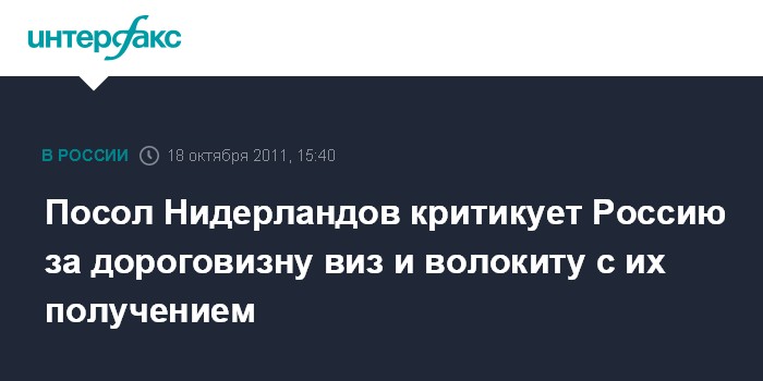 Посол Нидерландов критикует Россию за дороговизну виз и волокиту с их получением