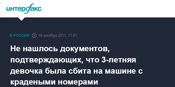 Не нашлось документов, подтверждающих, что 3-летняя девочка была сбита на машине с крадеными номерами
