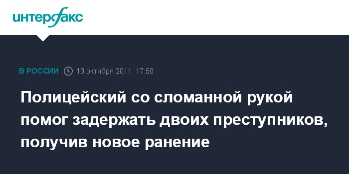 Полицейский со сломанной рукой помог задержать двоих преступников, получив новое ранение