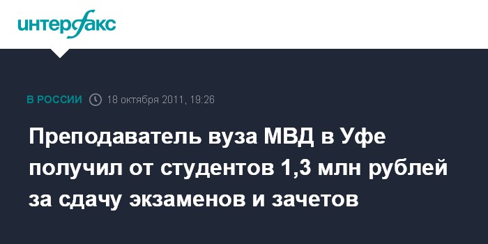 Преподаватель вуза МВД в Уфе получил от студентов 1,3 млн рублей за сдачу экзаменов и зачетов