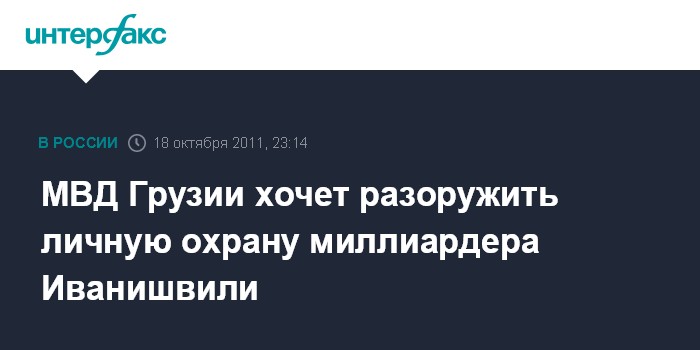 Тбилиси. 18 октября. INTERFAX.RU - МВД Грузии требует разоружения сотрудников личной охраны бизнесмена Бидзины Иванишвили, сообщила вечером во вторник его личный адвокат Эка Беселия.
