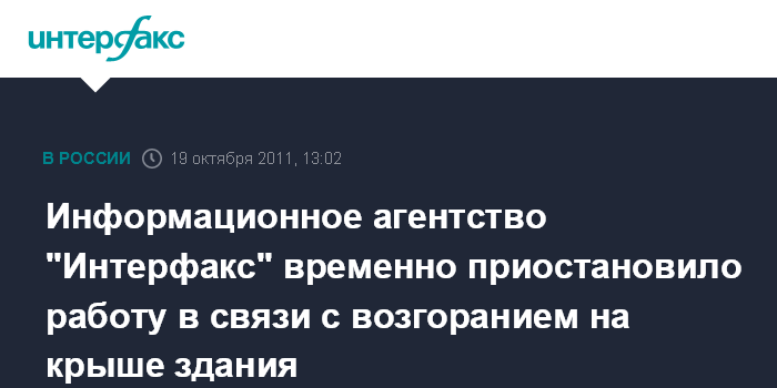 Информационное агентство "Интерфакс" временно приостановило работу в связи с возгоранием на крыше здания