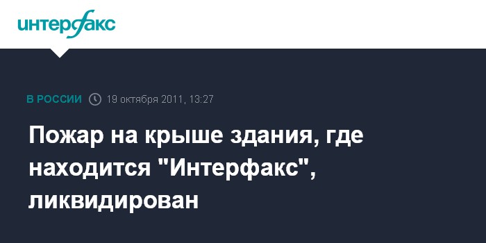 Москва. 19 октября. INTERFAX.RU - Ликвидирован пожар на крыше здания, где располагается информационное агентство "Интерфакс", сообщили в пресс-службе ГУ МЧС России по Москве.