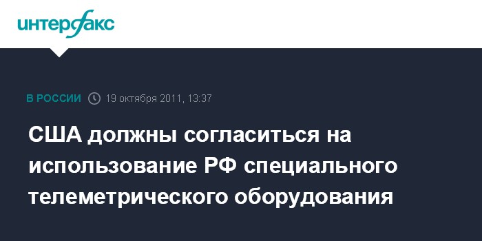 США должны согласиться на использование РФ специального телеметрического оборудования