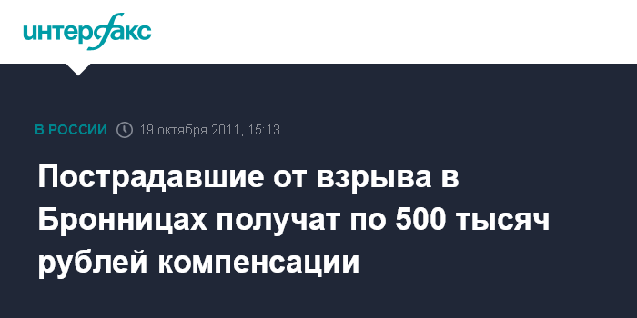 Пострадавшие от взрыва в Бронницах получат по 500 тысяч рублей компенсации