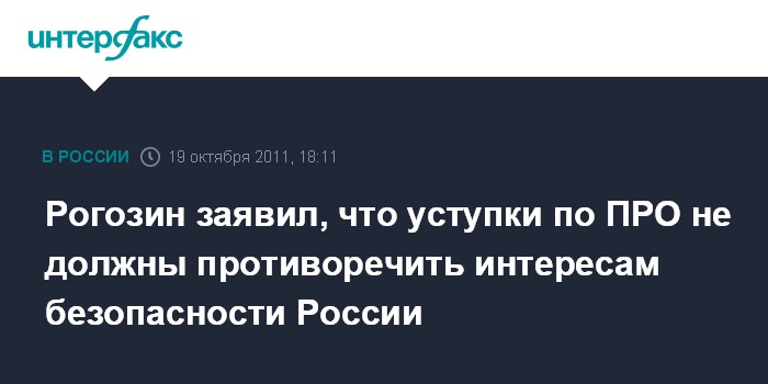 Горки. 19 октября. INTERFAX.RU - Россия в переговорах по ПРО не может пойти на уступки за счет ущемления собственной безопасности, заявил постпред России в НАТО Дмитрий Рогозин.