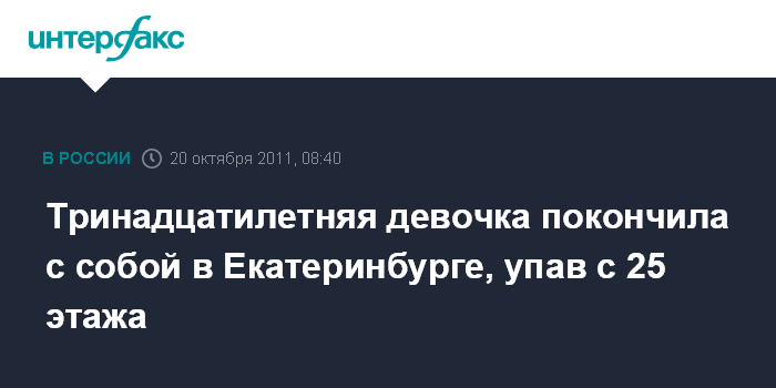 Екатеринбург. 20 октября. INTERFAX.RU - Ученица седьмого класса школы разбилась насмерть, прыгнув с балкона 25 этажа в Екатеринбурге, сообщает пресс-служба СУ СКР по Свердловской области.