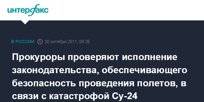 Прокуроры проверяют исполнение законодательства, обеспечивающего безопасность проведения полетов, в связи с катастрофой Су-24