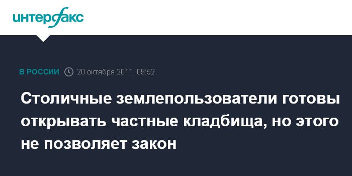 Столичные землепользователи готовы открывать частные кладбища, но этого не позволяет закон