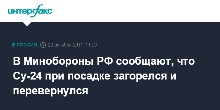 В Минобороны РФ сообщают, что Су-24 при посадке загорелся и перевернулся