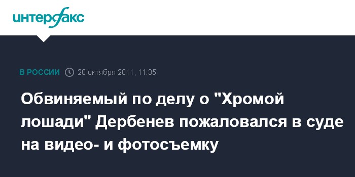 Обвиняемый по делу о "Хромой лошади" Дербенев пожаловался в суде на видео- и фотосъемку