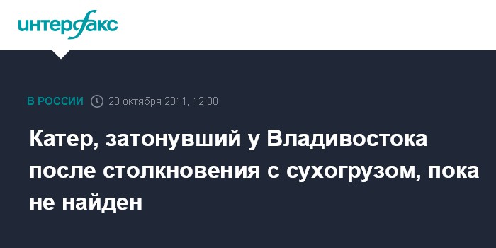 Владивосток. 20 октября. INTERFAX.RU - Дальневосточное следственное управления на транспорте опровергает сообщения некоторых СМИ о том, что на дне бухты Золотой Рог в акватории Владивостока найден катер, который затонул в сентябре после столкновения с сухогрузом.
