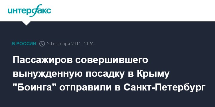 Симферополь. 20 октября. INTERFAX.RU - Пассажиры самолета Boeing-767-300, летевшего по маршруту Хургада - Санкт-Петербург и совершившего вынужденную посадку вечером в среду в международном аэропорту "Симферополь", вылетели в пункт назначения на двух самолетах прибывших за ними из Санкт-Петербурга.