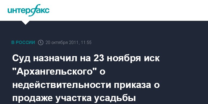 Суд назначил на 23 ноября иск "Архангельского" о недействительности приказа о продаже участка усадьбы