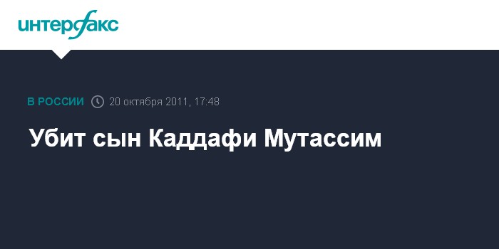 Лондон. 20 октября. INTERFAX.RU - В ливийском городе Сирт убит сын Муамара Каддафи Мутассим, который был советником по вопросам национальной безопасности Ливии, сообщает британский телеканал Sky News.