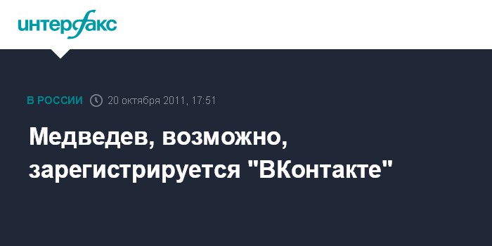 Москва. 20 октября. INTERFAX.RU - Президент РФ Дмитрий Медведев, у которого уже есть личные странички в Твиттере и Фейсбуке, подумывает о том, чтобы зарегистрироваться в социальной сети "ВКонтакте".