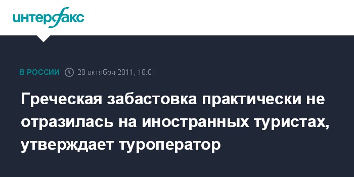Москва. 20 октября. INTERFAX.RU - Забастовка госслужащих в Греции, продолжающаяся два дня, практически не затронула иностранных туристов, в том числе российских, сообщил порталу "Интерфакс-Туризм" генеральный директор туркомпании "Музенидис Трэвел" Александр Цандекиди в четверг.