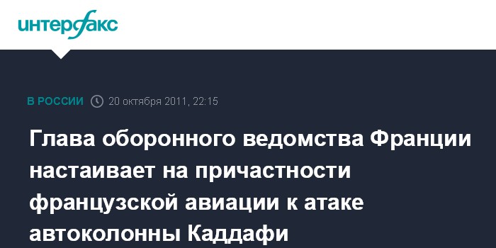 Париж. 20 октября. INTERFAX.RU - Министр обороны Франции Жерар Лонге заявил в четверг, что именно французские военные самолеты выявили и нанесли удар по колонне автомобилей, в которой находился бывший ливийский лидер Муамар Каддафи.