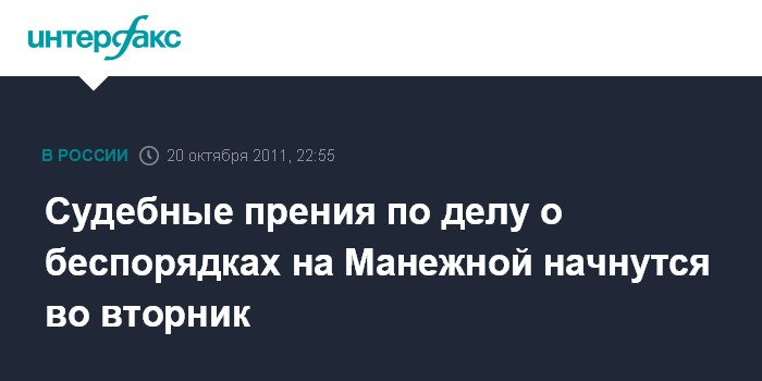 Москва. 20 октября. INTERFAX.RU - Тверской суд Москвы в предстоящий вторник приступит к прениям сторон по делу о беспорядках на Манежной площади в декабре прошлого года
