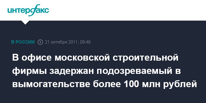 В офисе московской строительной фирмы задержан подозреваемый в вымогательстве более 100 млн рублей
