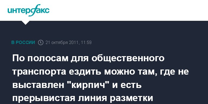 "В том случае, если на соответствующих участках дорог не установлен знак "Полоса для маршрутных транспортных средств" или знак "Въезд запрещен" (так называемый "Кирпич"), автомобилисты могут двигаться по выделенным полосам", - отметил Кузин. Вместе с тем, он подчеркнул, что заезжать на полосу можно только с учетом требований разметки, то есть в тех местах, где нанесена прерывистая линия.