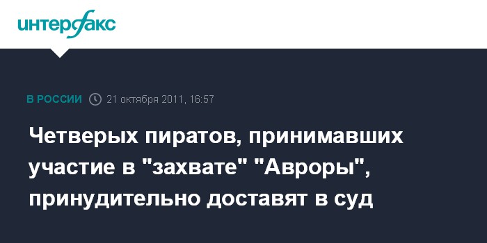 Четверых пиратов, принимавших участие в "захвате" "Авроры", принудительно доставят в суд