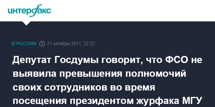 Москва. 21 октября. INTERFAX.RU - Федеральная служба охраны опровергла сообщения СМИ о превышении полномочий сотрудниками службы во время встречи президента РФ Дмитрия Медведева в четверг со студентами журфака МГУ.
