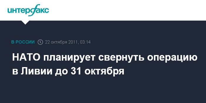 "Наша операция завершается, - заявил А.Расмуссен, отметив, что НАТО будет до полного завершения операции "отслеживать ситуацию на местности и держать в готовности силы для реагирования на угрозы против гражданского населения, если возникнет такая необходимость".