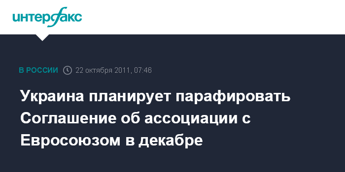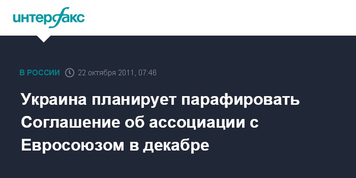 Украина планирует парафировать Соглашение об ассоциации с Евросоюзом в декабре